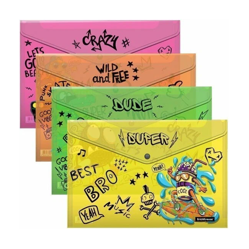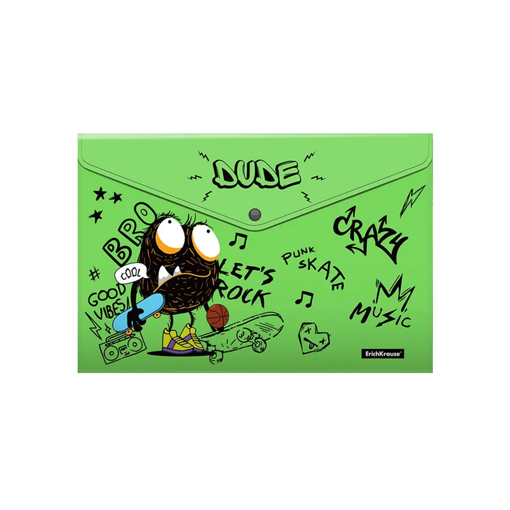 Яркая папка ErichKrause "Funny Monsters" формата А4 с кнопкой — практичное и стильное решение для хранения и переноски документов. Надёжная кнопка фиксирует бумаги, защищая их от выпадения, а весёлый дизайн с милыми монстриками делает папку особенно привлекательной для детей.