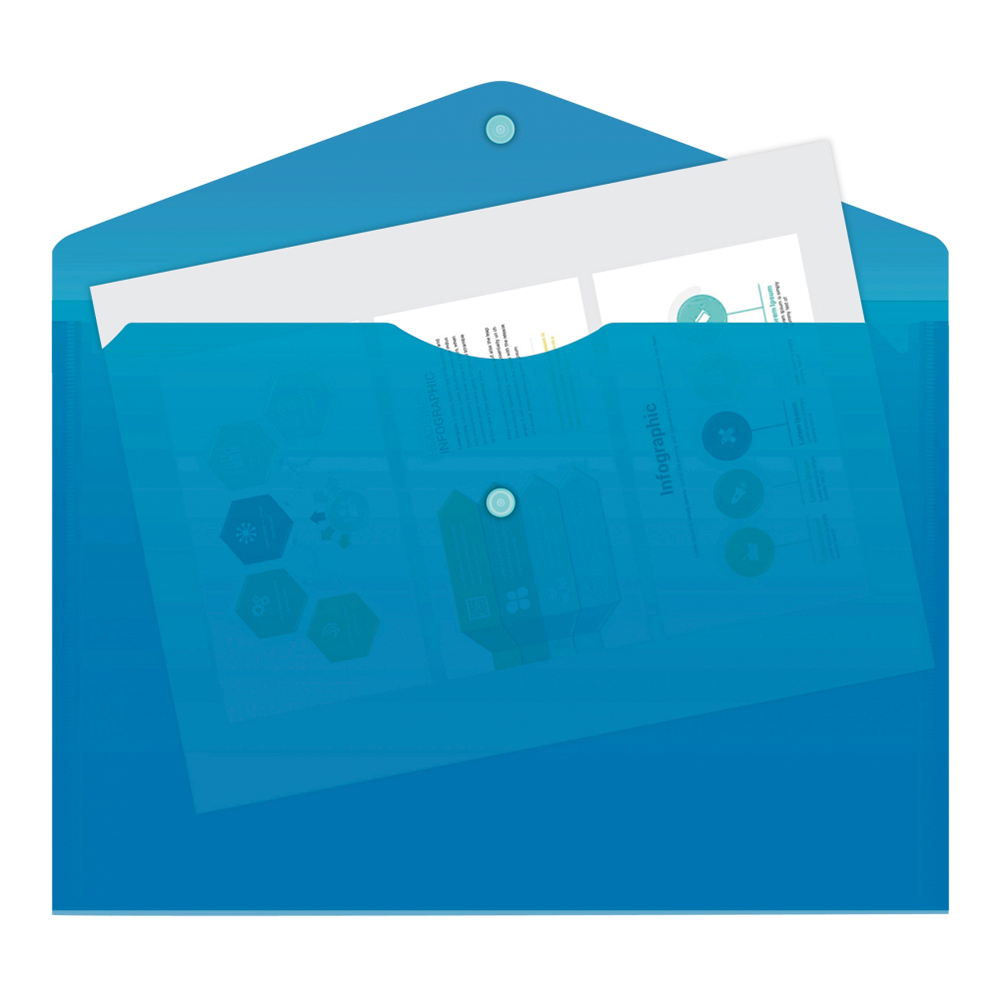 Изготовлена из тонкого и экологичного пластика толщиной 0,012 мм, который защищает бумаги от пыли и лёгких загрязнений. Удобная кнопка-застёжка надёжно фиксирует содержимое, а компактный и лёгкий дизайн делает папку идеальной для школы, офиса или дома.