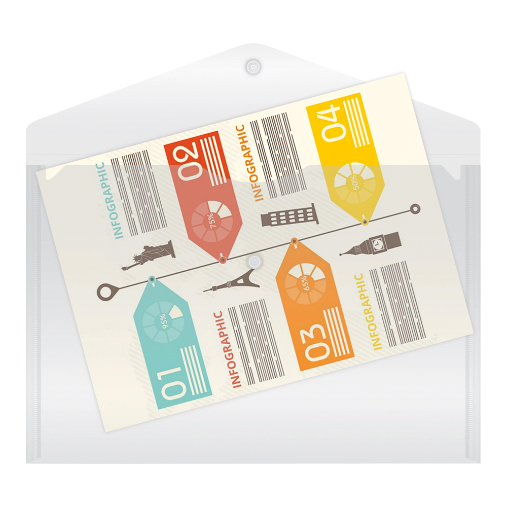 • Прозрачный материал — легко контролировать содержимое без открытия папки.