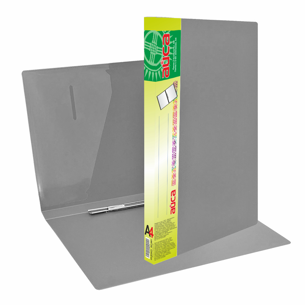 Папка с пружинами - А4 серый (237х20х307мм.) "Айса" с карманом толщина пластика 0.70мм. (Shantou Yuansheng Industry)