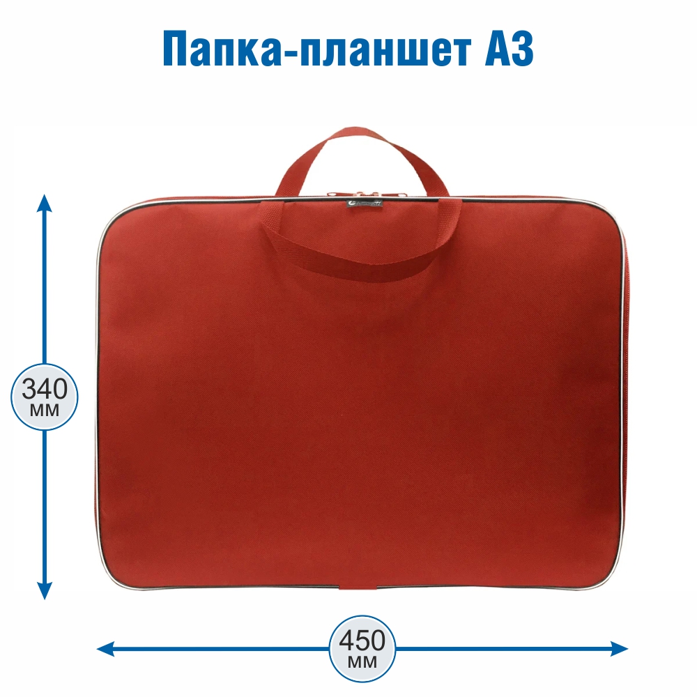 Практичная и стильная папка формата A3, выполненная из прочной ткани, с удобными ручками для переноски. Надежный замок обеспечивает сохранность документов, а яркий красный цвет делает папку заметной и легко узнаваемой.