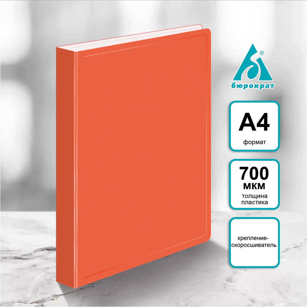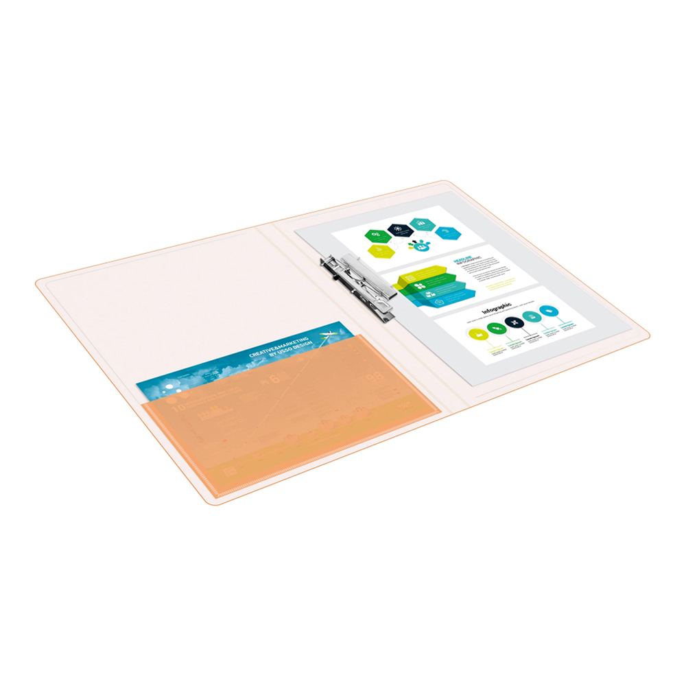 Эта стильная оранжевая папка формата А4 изготовлена из прочного пластика толщиной 0,7 мм, который защищает бумаги от влаги, пыли и заломов. Надёжный металлический зажим обеспечивает лёгкое закрепление листов без необходимости их прокалывать.