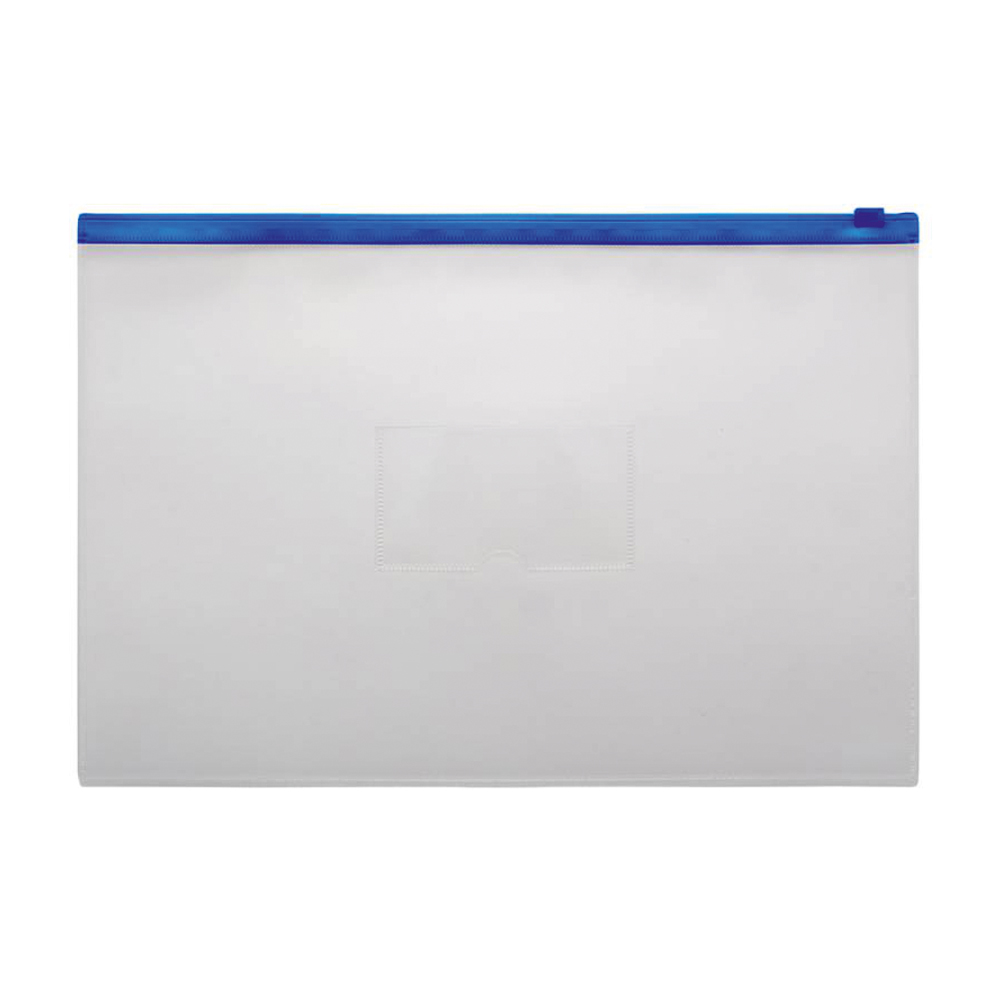 Папка с ZIP замком - А4+ синий 0.15 мм. "Бюрократ" с карманом для визиток (Silwerhof)