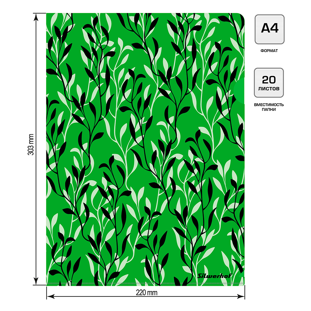 Папка-уголок - А4 светло-зеленый "Flora" (Silwerhof)