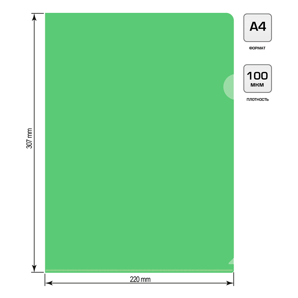 Конструкция «уголок» позволяет быстро и легко вставлять или извлекать документы, что делает папку идеальной для школы, офиса или дома. Яркий зелёный цвет делает папку заметной и облегчает сортировку документов.