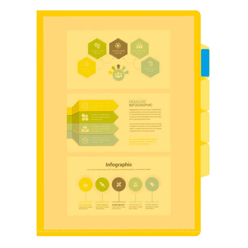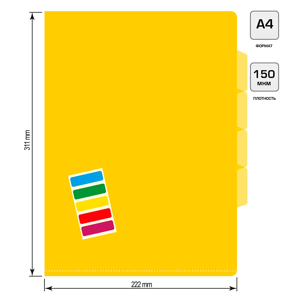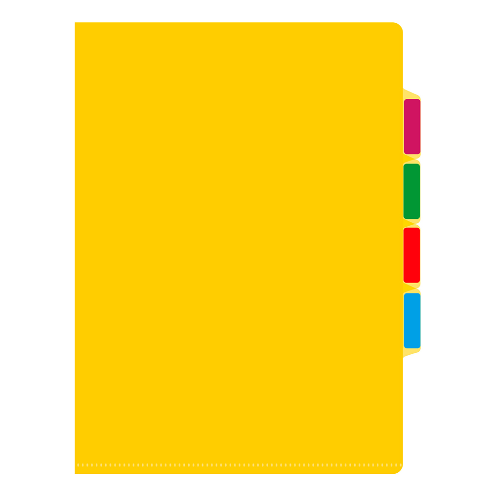 Конструкция «уголок» с тремя разделителями позволяет удобно распределять документы по категориям и быстро вставлять или извлекать бумаги. Яркий жёлтый цвет делает папку заметной и стильной, а формат A4 обеспечивает вместительность для рабочих и учебных документов.