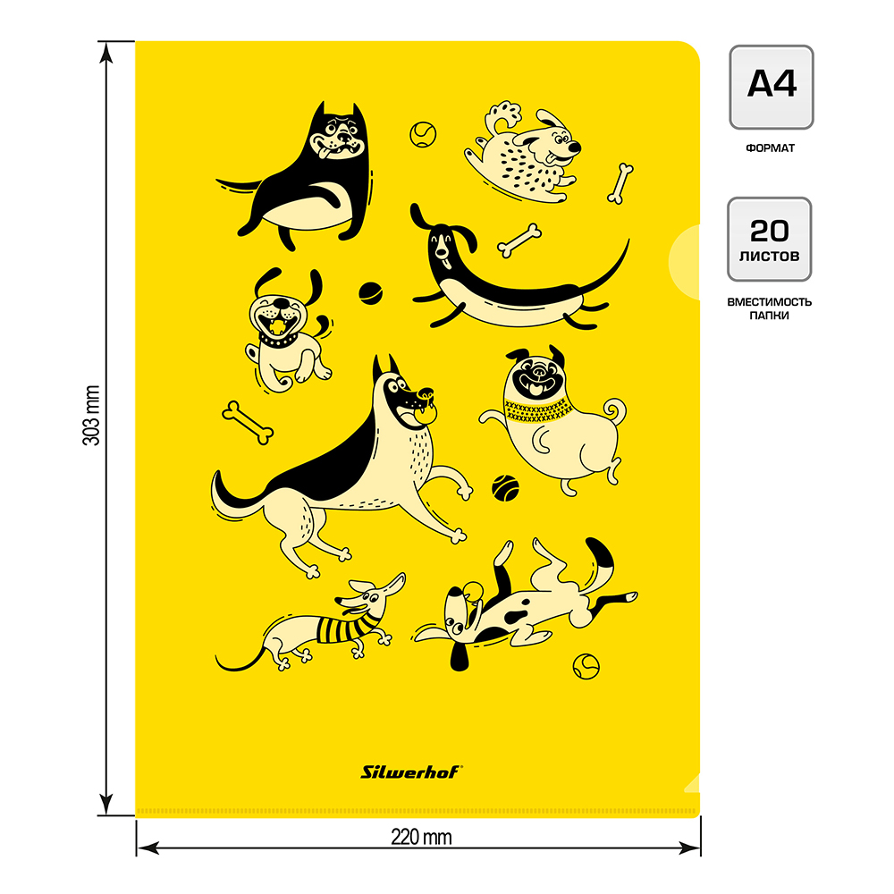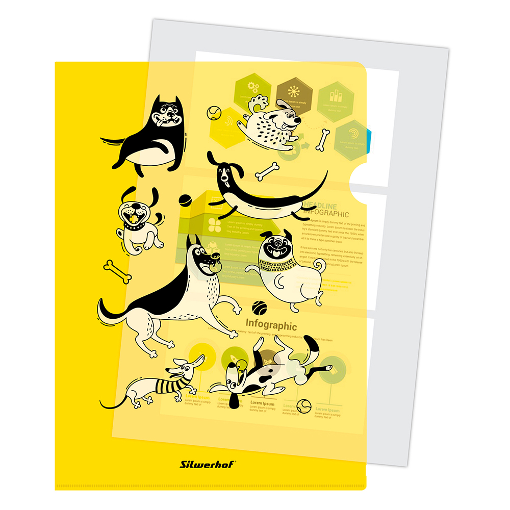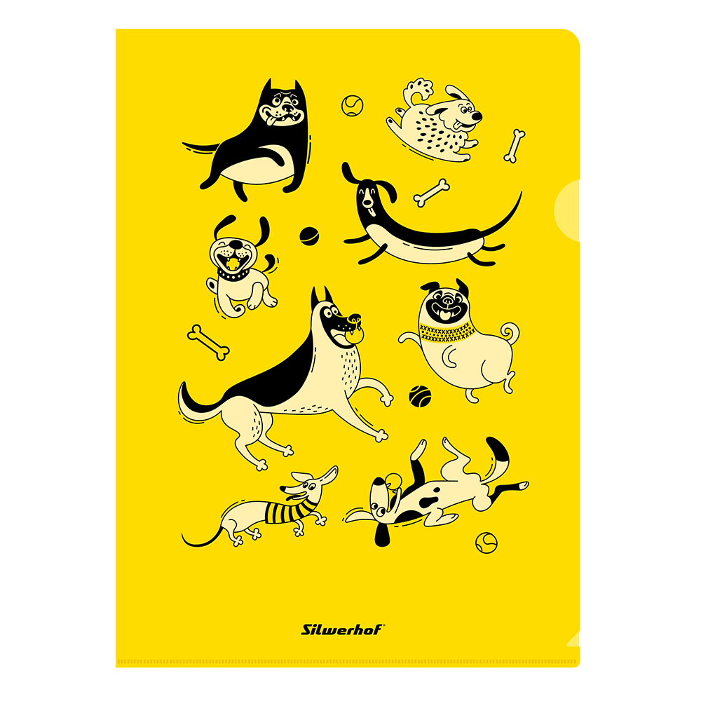 Папка-уголок - А4 желтый "Dogs" (Silwerhof)