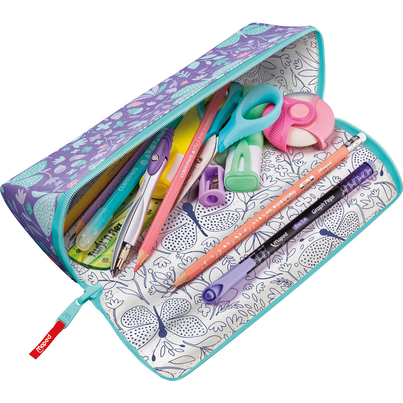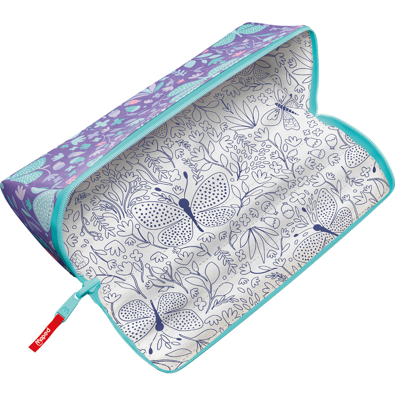 Пенал Maped "OPEN XXL BUTTERFLY" — это стильный и функциональный аксессуар для школьников, выполненный в ярком дизайне с изображением бабочек. Он сочетает в себе вместительность и оригинальный внешний вид, что делает его отличным выбором для девочек.