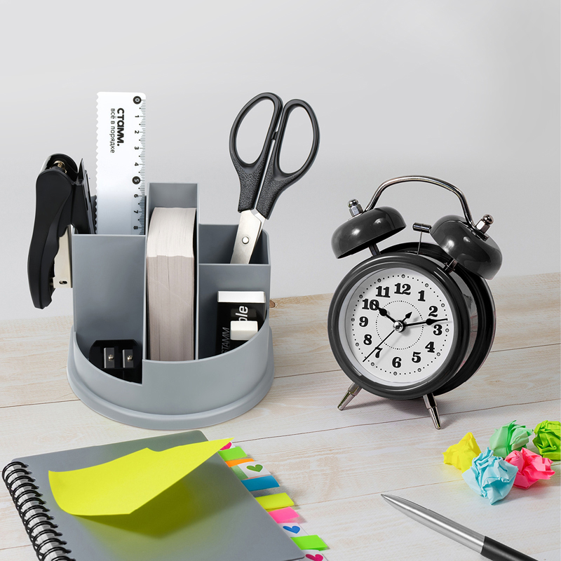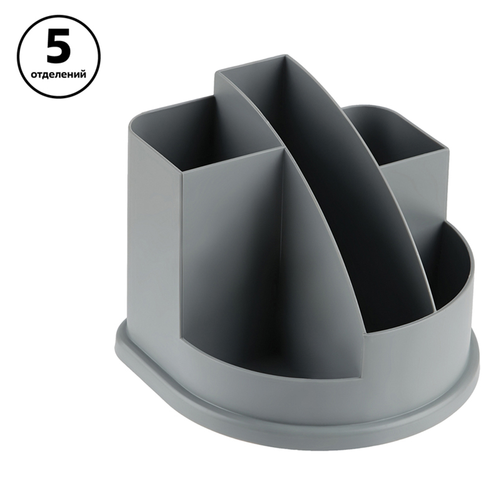 Выполнена в универсальном сером цвете, легко вписывается в любой офисный или учебный интерьер. Подставка позволяет удобно разместить ручки, карандаши, маркеры и другие мелкие канцелярские принадлежности, помогая поддерживать порядок на столе. Прочная конструкция обеспечивает устойчивость и долгий срок службы.