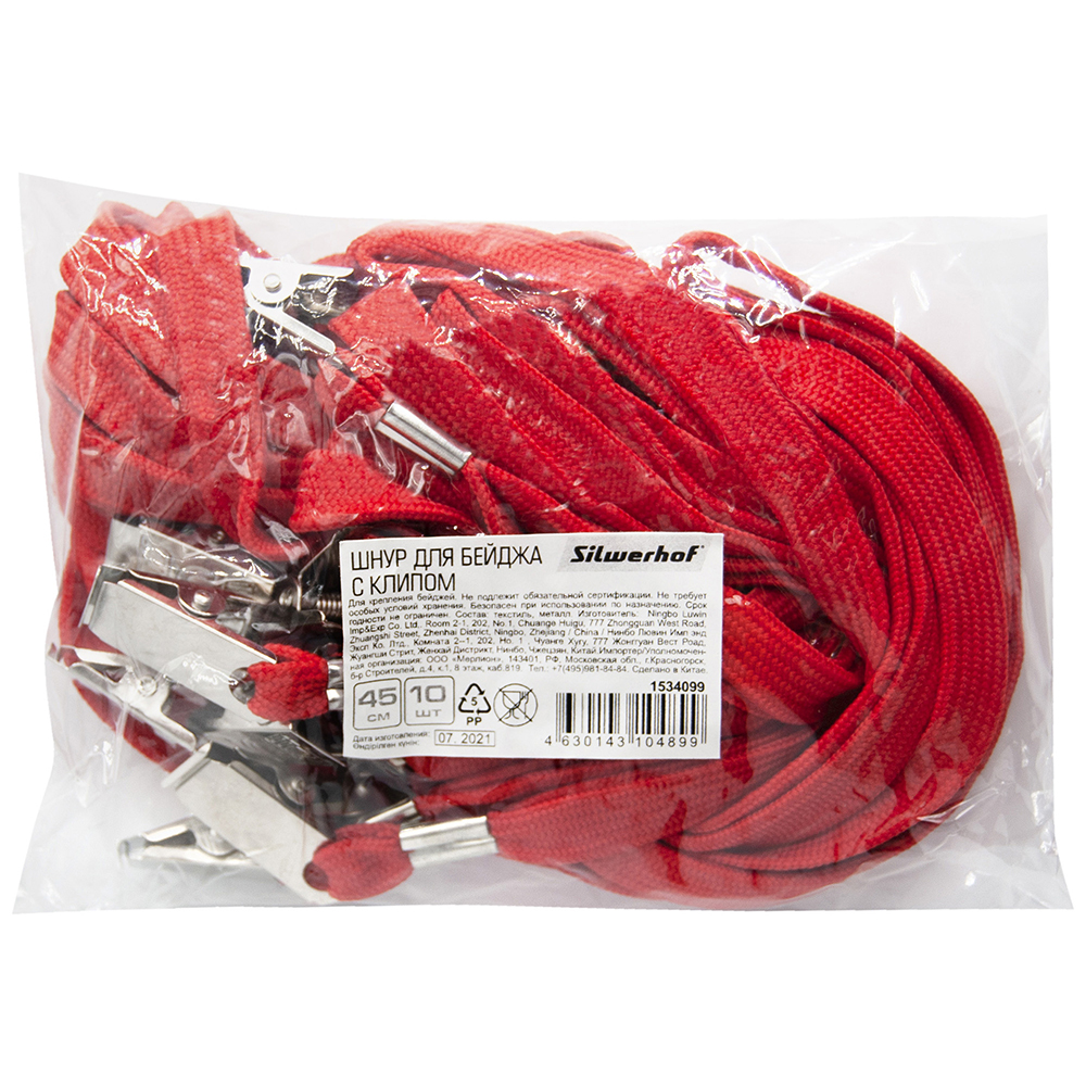Ремешок д/бейджа в наборе - 10 шт клип текстиль красный (Silwerhof)