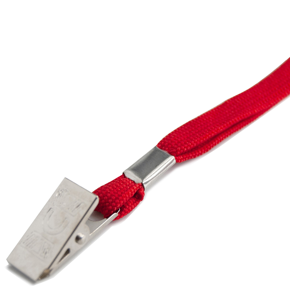 Каждый ремешок выполнен из прочного текстильного материала яркого красного цвета и оснащён удобным пластиковым клипом, который надёжно фиксируется на бейджах с отверстиями или зажимами. Длина стандартная — около 45 см, что обеспечивает комфортное ношение на шее.