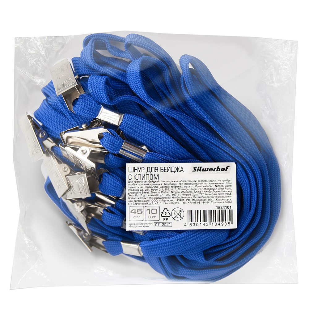 Ремешок д/бейджа в наборе - 10 шт клип текстиль синий (Silwerhof)