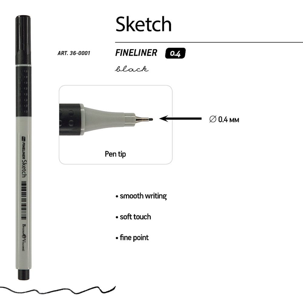 Ручка капиллярная - черная 0.4мм. "SKETCH" (Bruno Visconti)