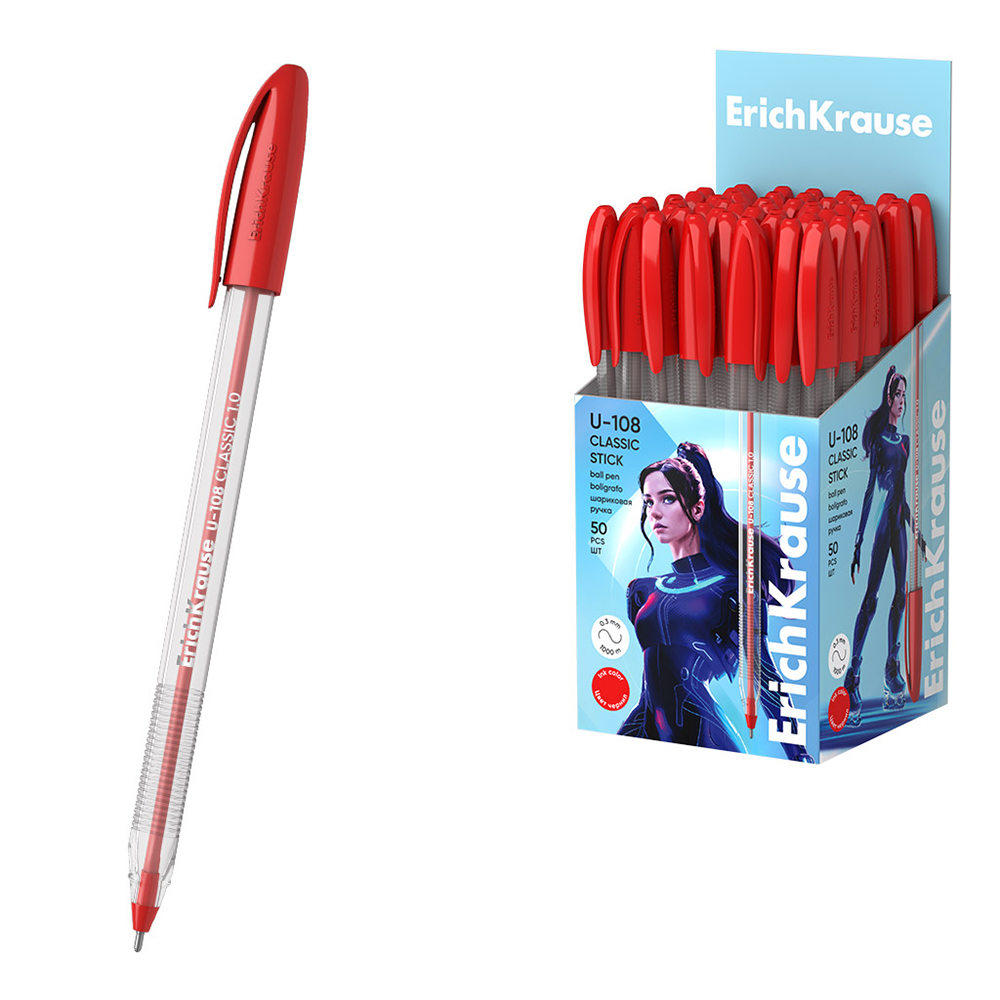 Ручка шариковая - красный стержень 1.0мм. "U-108 Stick Classic Ultra Glide Technology" (ErichKrause)