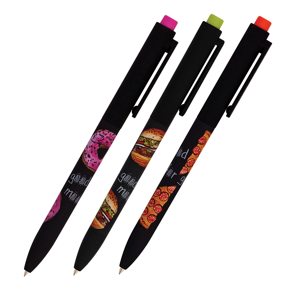 Корпус ручки украшен выразительным дизайном серии "FunClick. Food in black", который добавляет индивидуальности вашему аксессуару для письма и поднимает настроение при ежедневном использовании.