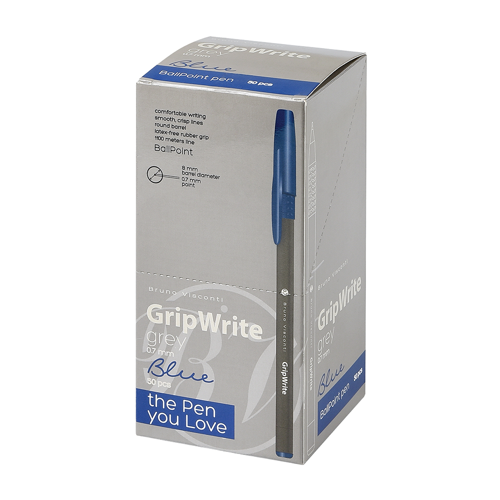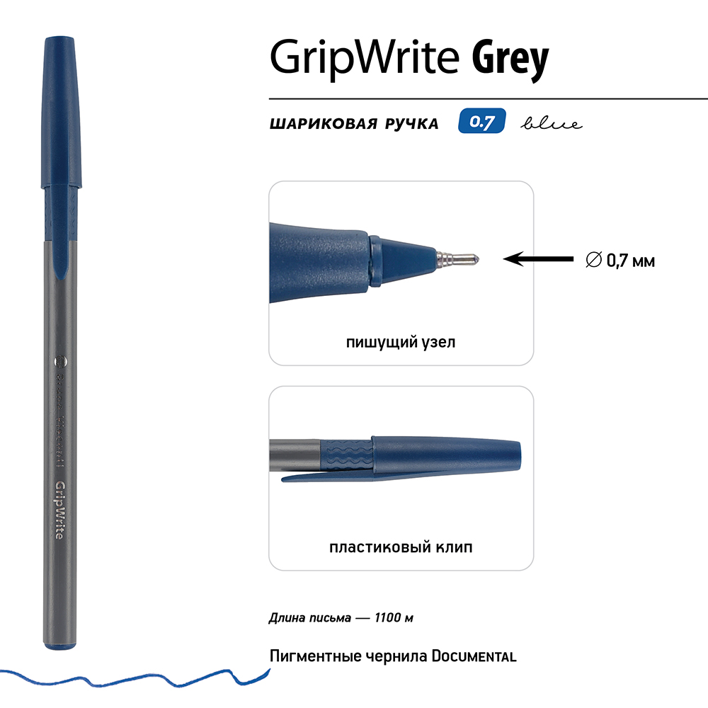 Ручка шариковая - синий стержень 0.7мм. "GripWrite Grey" (Bruno Visconti)