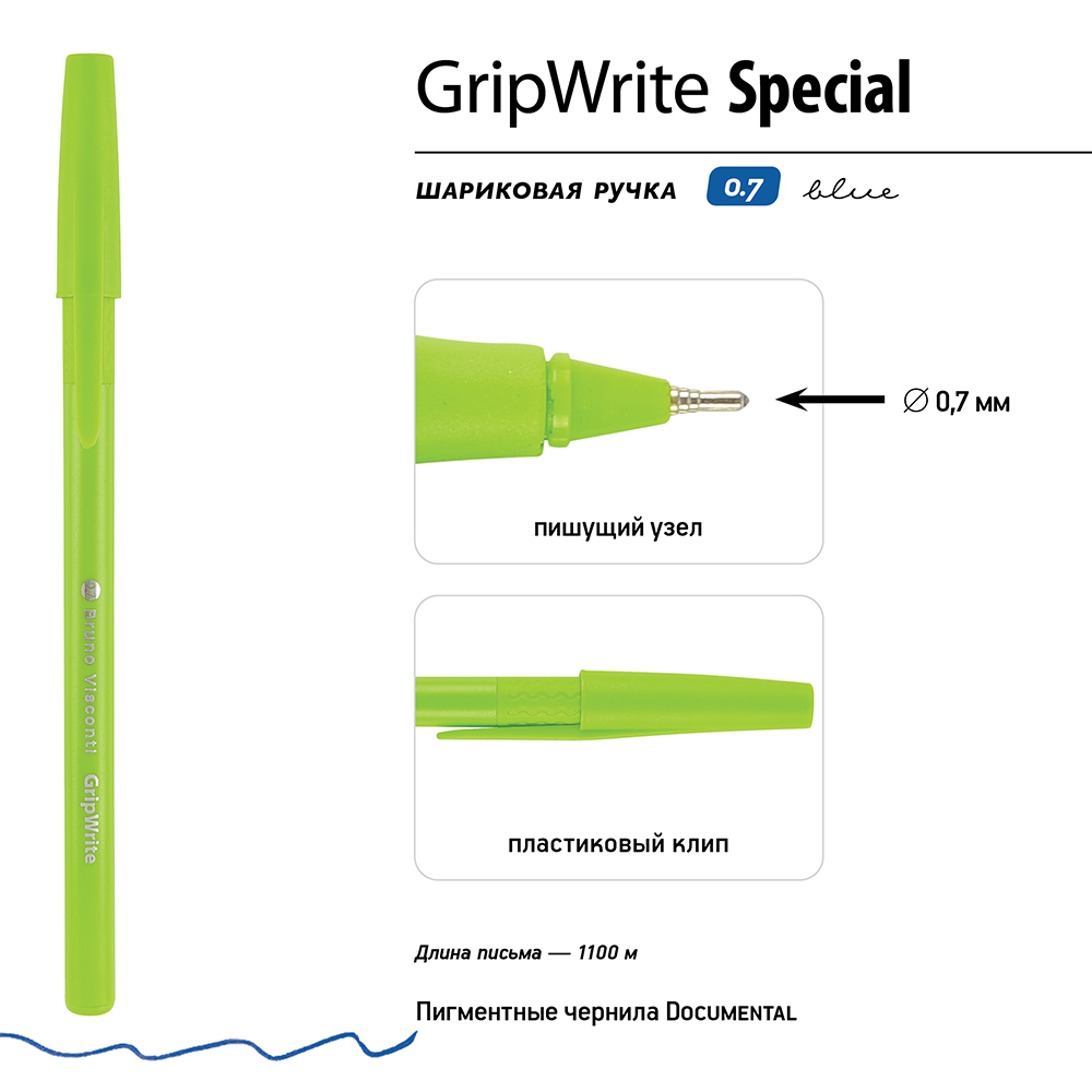 Шариковая ручка "GripWrite Special" от Bruno Visconti — яркий и удобный аксессуар для письма, который сочетает комфорт использования, оригинальный дизайн и надёжное качество.