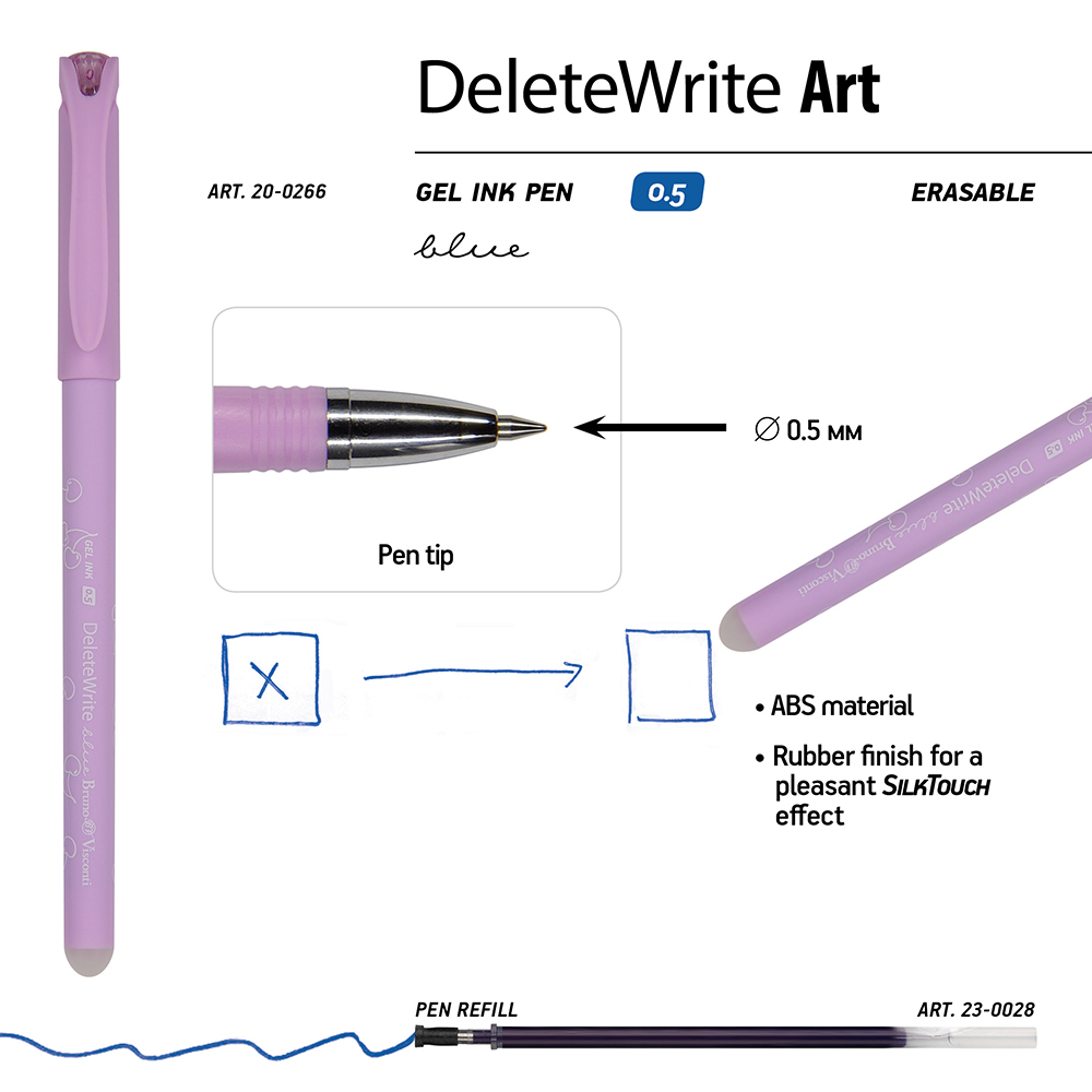 Чернила «DeleteWrite» легко становятся прозрачными при трении небольшой плотной резинкой на конце корпуса ручки. При этом сама резинка не стирается так быстро, как обычный ластик и годится для многократного использования.