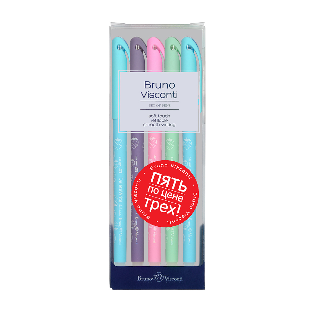 Ручки гелевые в наборе - 1цв.5шт. синий "Акция 5по цене 3х.DeleteWrite Art. Клубнички" со стираемыми чернилами (Bruno Visconti)