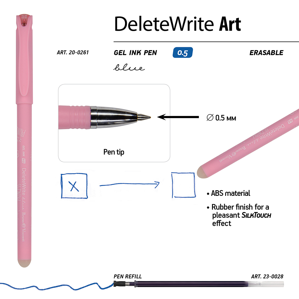 Ручка «DeleteWriteArt. Принцесса» со стираемыми чернилами от BrunoVisconti – отличное предложение для тех, кто ценит качество и надежность. «DeleteWrite» - ваш идеальный помощник в деле исправления ошибок или удаления помарок при работе с деловыми документами или учебными задачами.