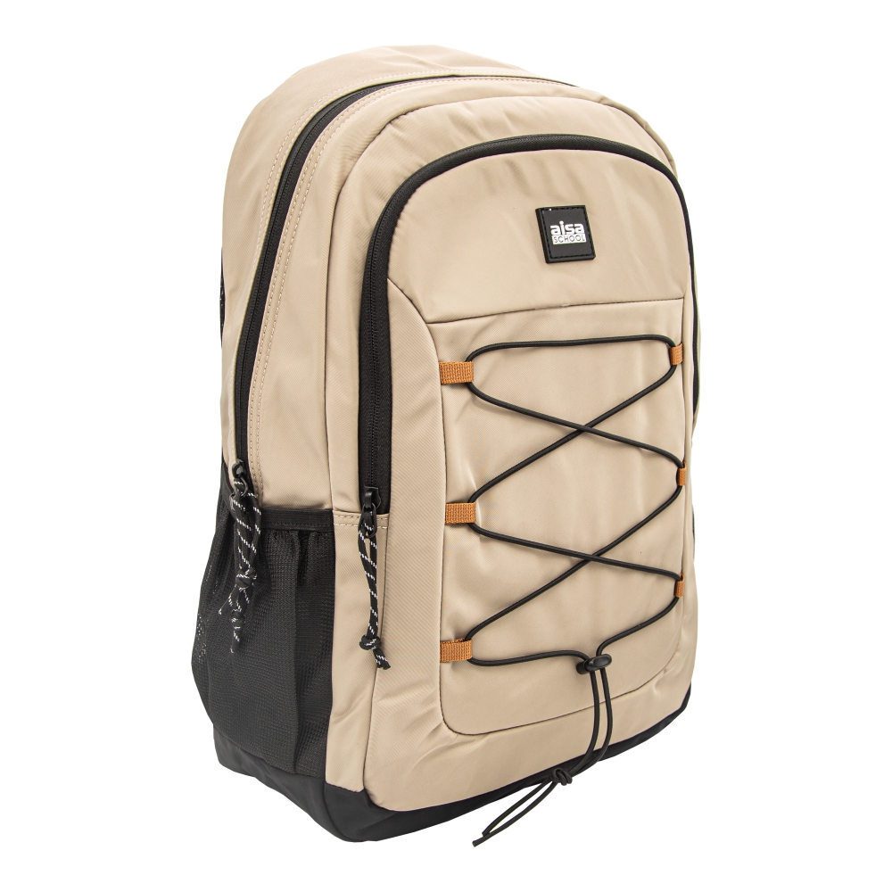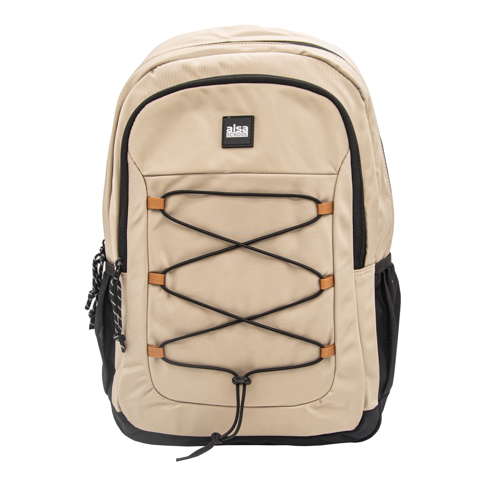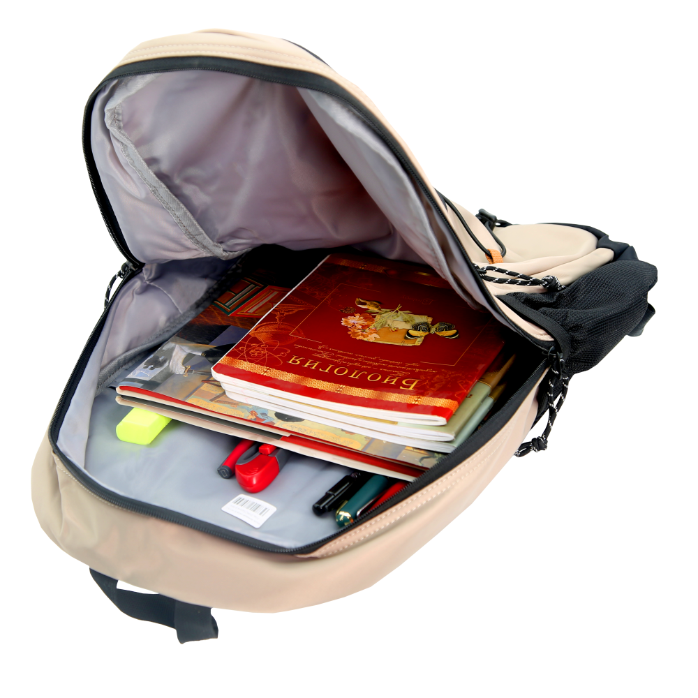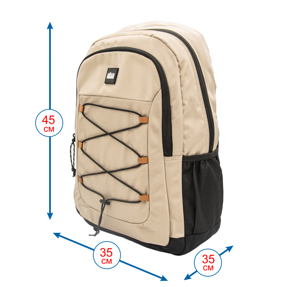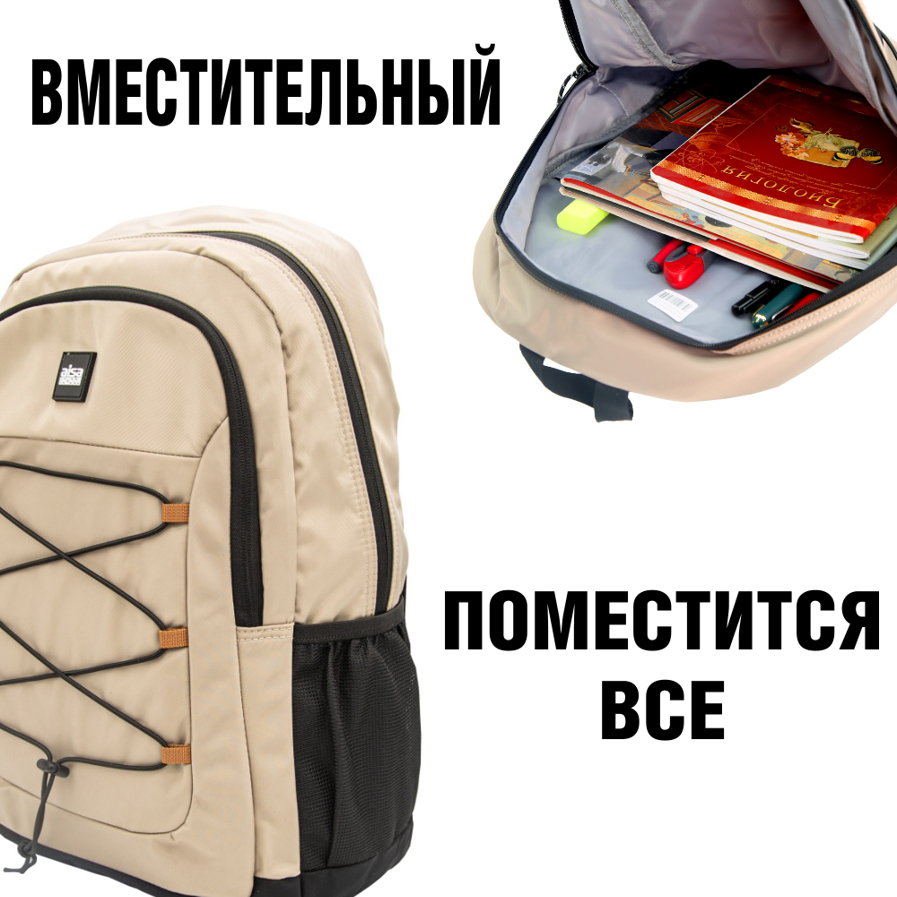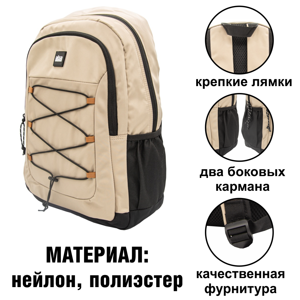 Современный и функциональный рюкзак в модном бежевом цвете с оригинальной утяжкой на передней панели. Отличный выбор для школы, прогулок или повседневного использования.