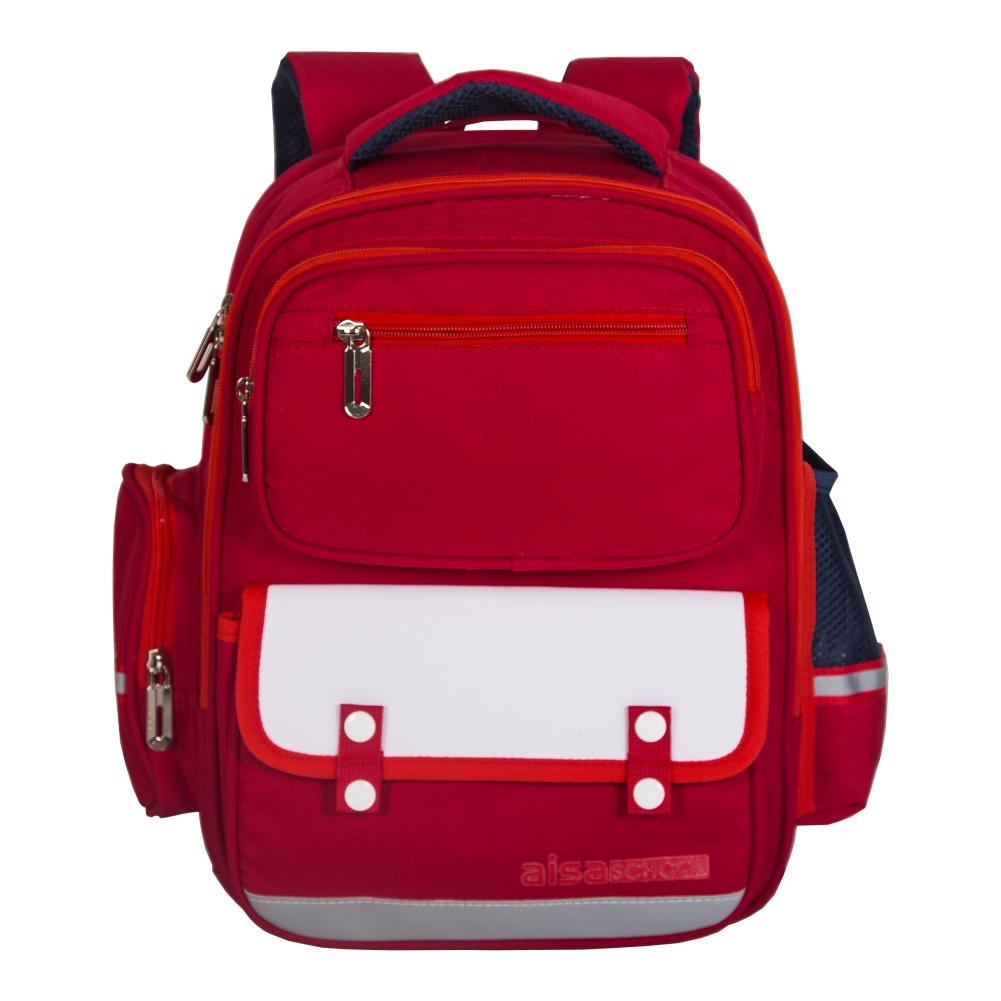 Рюкзак с мягкой спинкой представлен торговой маркой AISA SCHOOL является одним из самых необходимых предметов для учебного процесса Вашего ребенка. Отлично подойдет для девочек младших и средних классов. Рюкзак объемный, поэтому его можно использовать и вне школы. Дизайн рюкзака представлен в красном цвете. Рюкзак имеет один  вместительный основной отдел на молнии. На фронтальной части рюкзака два кармана: один на молнии, второй на липучках для дополнительных канцелярских принадлежностей со светоотражающей лентой, которая может обезопасить ребенка в темное время суток во время дорожного движения.