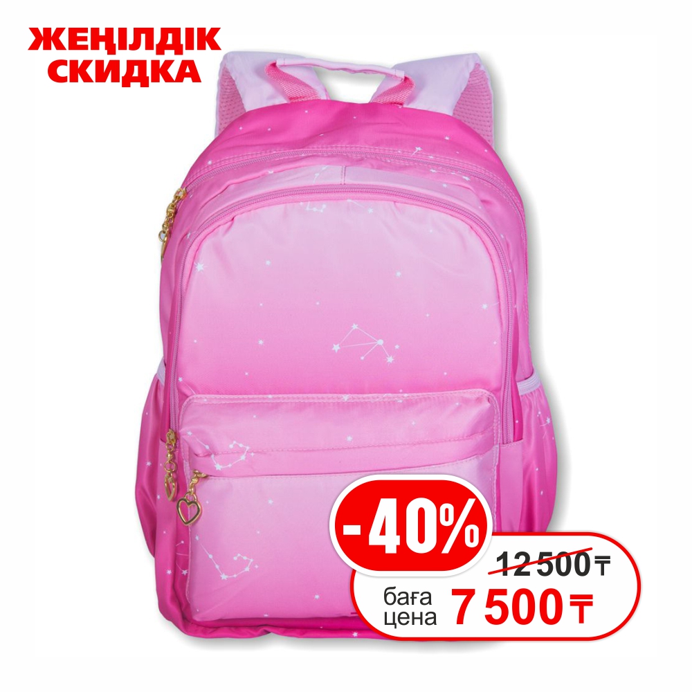 Цветовое оформление модели представлено в ярко-розовом цвете. Весь рюкзак оформлен звездочками, напоминающие галактику. Смотрится креативно и стильно.