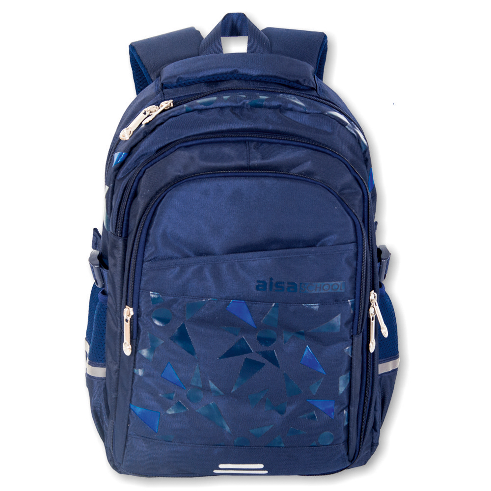 Ортопедический рюкзак представленный торговой маркой AISA SCHOOL для мальчиков станет неотъемлемой частью учебного процесса Вашего ребенка. Отлично подойдет для школьников младших и средних классов. Рюкзак довольно объемный, поэтому его можно использовать и в поездках. Дизайн рюкзака представлен в синем цвете, с использованием принта в форме геометрических фигур. Рюкзак имеет один вместительный основной отдел и один отдел поменьше. На фронтальной части рюкзака два кармана для письменных принадлежностей. По бокам имеются два сетчатых кармана со светоотражающими полосками. Лямки рюкзака также оформлены светоотражающими деталями, которые могут обезопасить ребенка в темное время суток во время дорожного движения. Рюкзак изготовлен из легкого и прочного полиэстера. Лямки прочные и мягкие, также для дополнительного удобства переноски имеются ручка-петелька и мягкая ручка. Размер рюкзака 43х29х17 см.