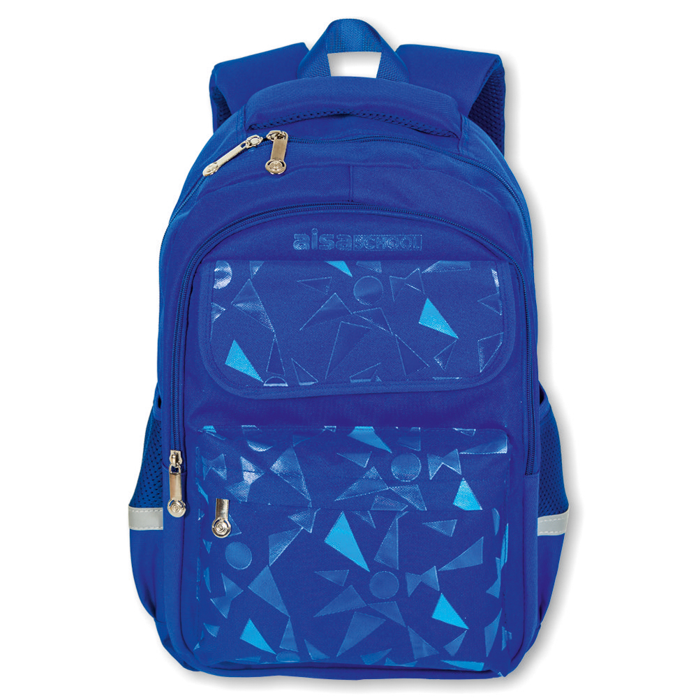 Рюкзак c мягкой спинкой представлен торговой маркой AISA SCHOOL является одним из самых необходимых предметов для учебного процесса Вашего ребенка. Отлично подойдет для мальчиков средних классов. Рюкзак объемный, поэтому его можно использовать и вне школы. Дизайн рюкзака представлен в голубом цвете, с использованием мелких изображений в виде геометрических фигур. Рюкзак имеет два вместительных отдела на молнии: один большой отдел считается основным, второй отдел поменьше. На фронтальной части рюкзака два кармана один на молнии, второй на липучках для дополнительных канцелярских принадлежностей.