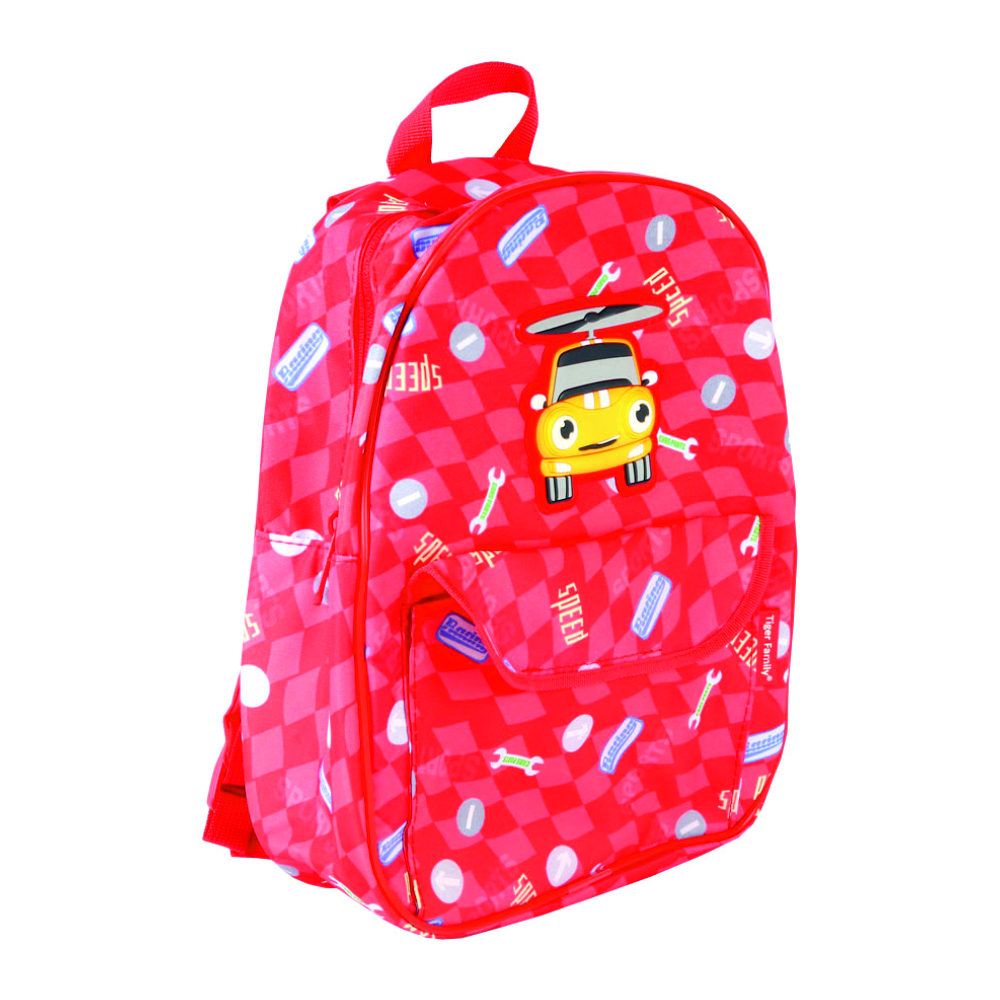 Рюкзак "BACKPACK JUNIOR" сделан из водоотталкивающей ткани. Ткань из экологически чистых волокон - всё в соответствии с европейскими стандартами качества. Высокое качество ткани не позволяет грязи въедаться, что значительно облегчает процесс чистки. У рюкзака "BACKPACK JUNIOR" очень интересная расцветка: по яркому красному фону изображён принт из гаечных ключей, дорожных знаков, названия марки авто. Рюкзак украшен нашивкой из полиэтилена: весёлая, жёлтая кроха. Рюкзак "BACKPACK JUNIOR" имеет основной отдел, наружный карман спереди и боковой карман. Закрывается на застёжку-молнию, карман - на липучку. Размер 24х29х10 см.