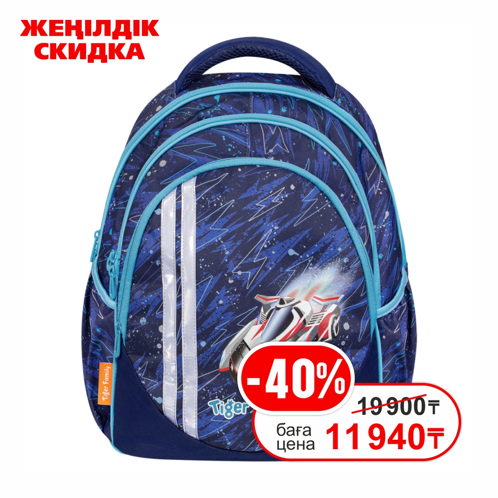Ортопедический рюкзак TIGER для мальчиков "Champ. Rush hour". Выполнен из лёгкого и качественного материала, обладающего водонепроницаемостью. Оформлен в стильном дизайне сине-голубого цвета с рисунком гоночной машины. Яркий дизайн, который обязательно понравится Вашему ребёнку! В рюкзаке три отделения на молнии: один побольше, два поменьше. Также есть два боковых кармана. Спинка рюкзака ортопедическая - способствует правильному развитию здоровой осанки у ребёнка, сделана из спонжевых панелей анатомической формы. Имеется съемный нагрудной ремешок, который уменьшает нагрузку на спину. В рюкзаке присутствуют светоотражающие элементы спереди и на лямке рюкзака. Имеет мягкие плечевые лямки и ручку.