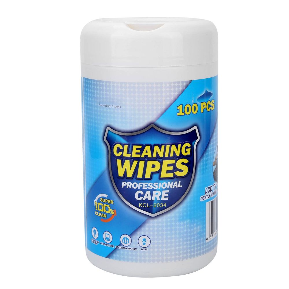 Салфетки чистящие универсальные в пластиковой тубе — 100 шт. CLEANING WIPES PROFESSIONAL CARE, артикул: KCL-2034.