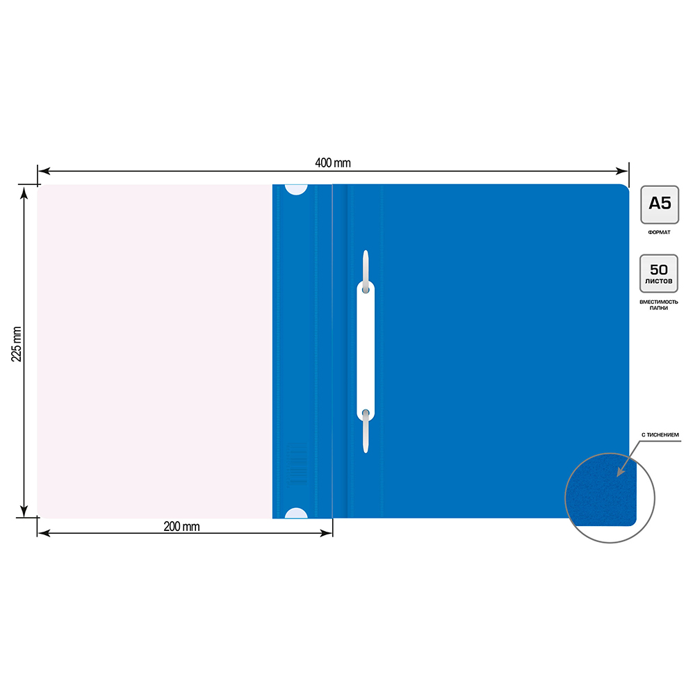Скоросшиватель пластиковый - синий А5 "Бюрократ Люкс" (Silwerhof)