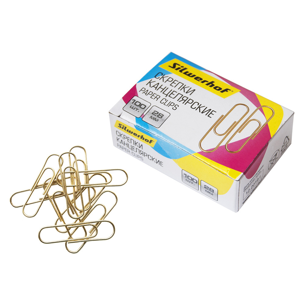 Скрепки - 28мм. 100шт. золотистый (Silwerhof)