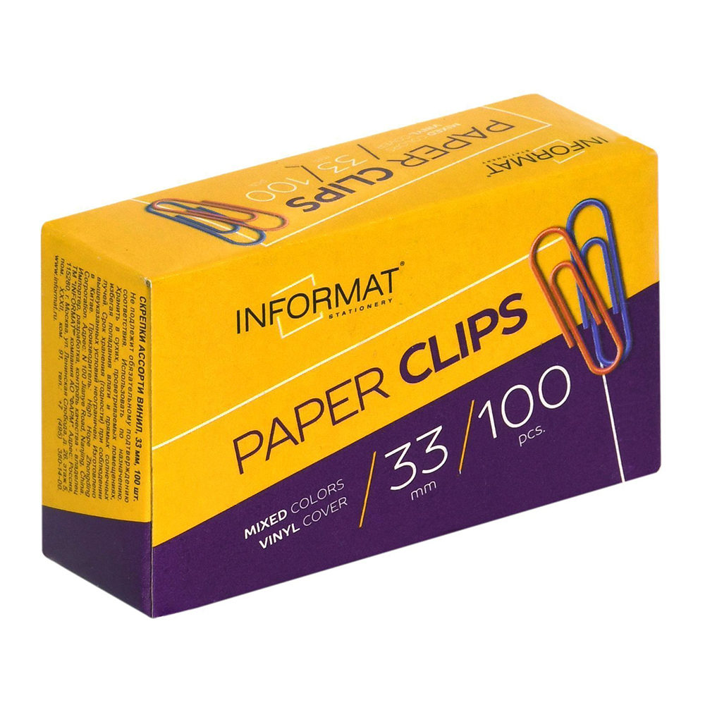 Скрепки - 33мм. 100шт. "inФормат" виниловое ассорти (Фарм)