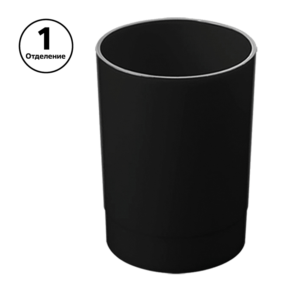 Стакан канцелярский - черный пластик круглый "Лидер" (Стамм)