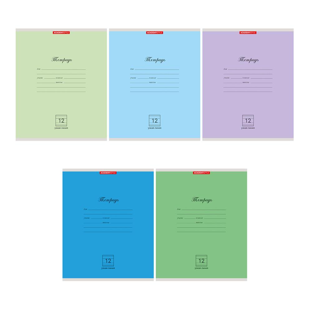 Тетрадь - А5  12л. линейка "Однотон Микс" син. (Академия) Тетрадь - А5 12л. линейка "Однотон Микс" син. (Академия)