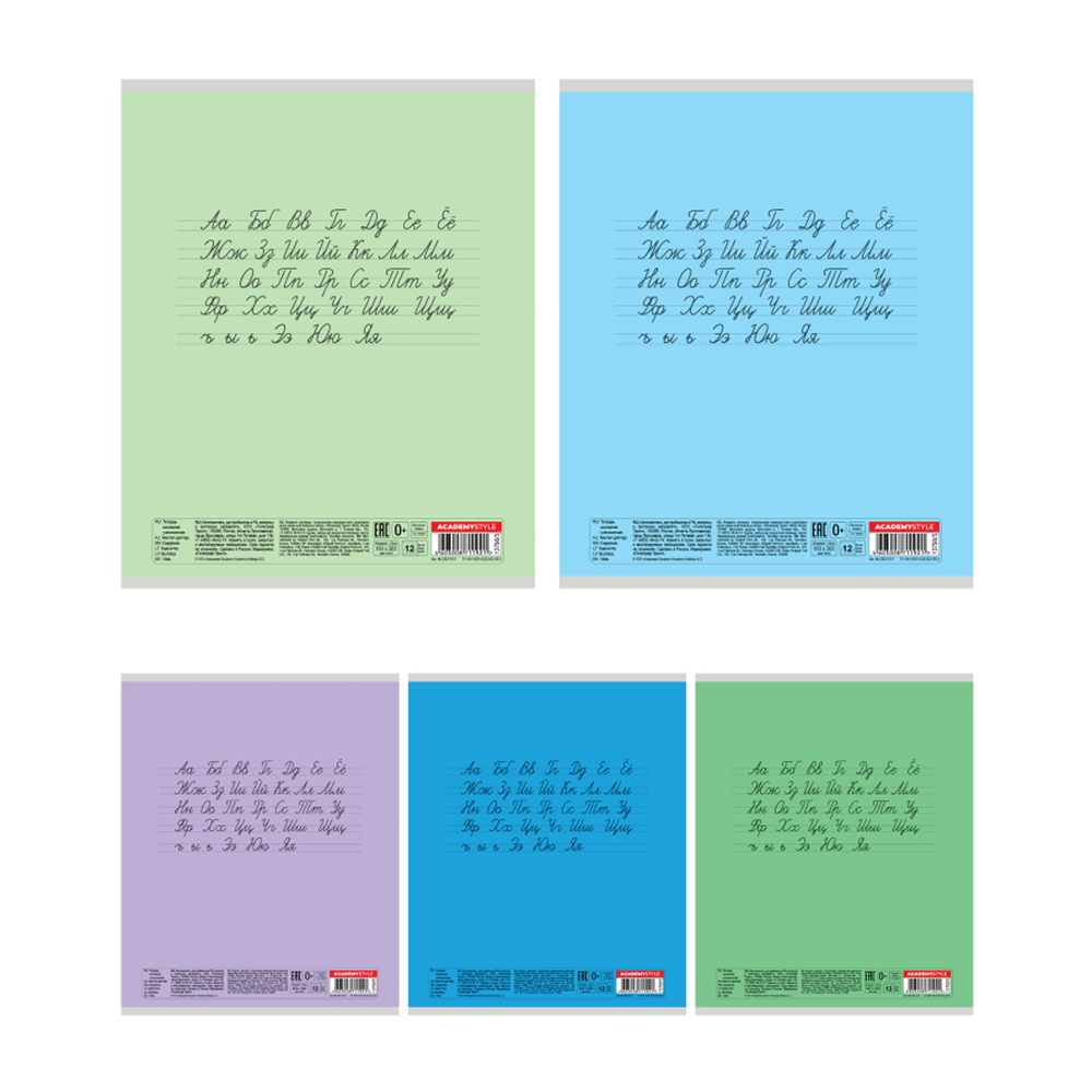 Тетрадь - А5 12л. 1класс косая "Однотонные Микс" (Академия)