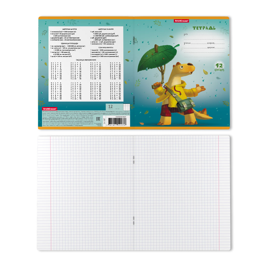 Тетрадь А5, 12 листов в клетку «Динозаврикl» (ErichKrause) — яркая и удобная тетрадь для учебы, конспектов и повседневных записей. Компактный формат А5 позволяет легко носить её в рюкзаке или сумке.