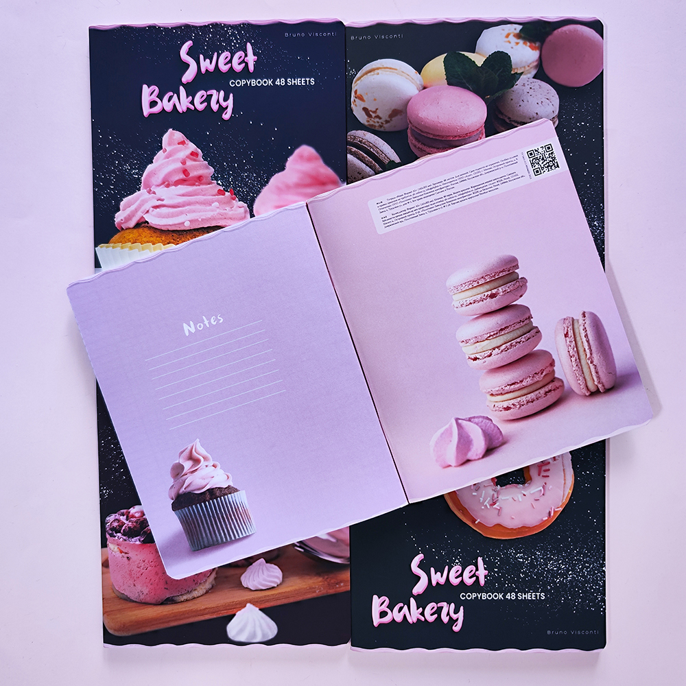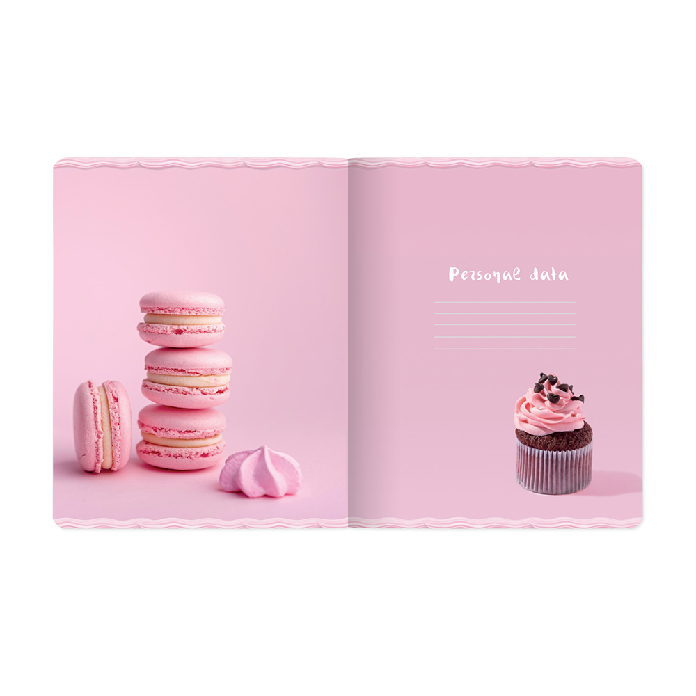 Обложка оформлена в сладкой тематике с изображениями пончиков, капкейков и десертов в стильной современной подаче. Такой дизайн поднимает настроение и делает тетрадь особенно привлекательной для школьников и студентов.