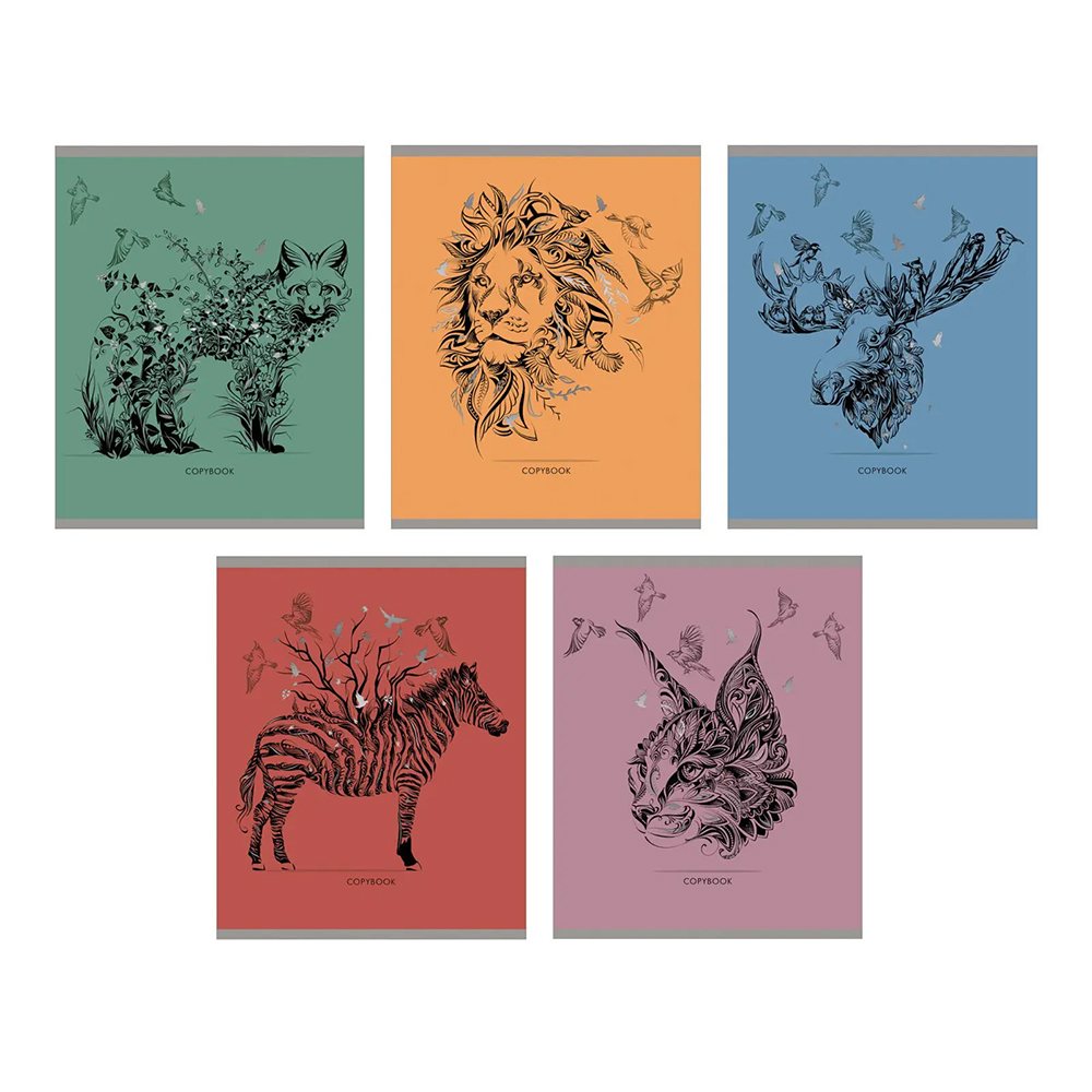 Обложка украшена яркими изображениями диких животных, что придает тетради выразительный и современный вид. Такой дизайн особенно понравится любителям природы и оригинальных аксессуаров.