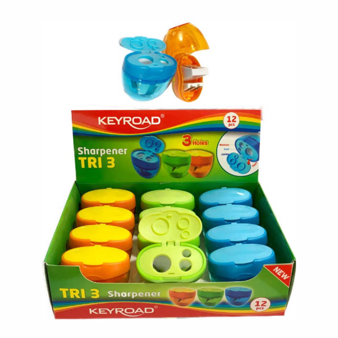 Точилка с тремя отверстиями ассорти «KEYROAD» от бренда Ningbo — универсальный и практичный аксессуар для заточки карандашей разного диаметра.