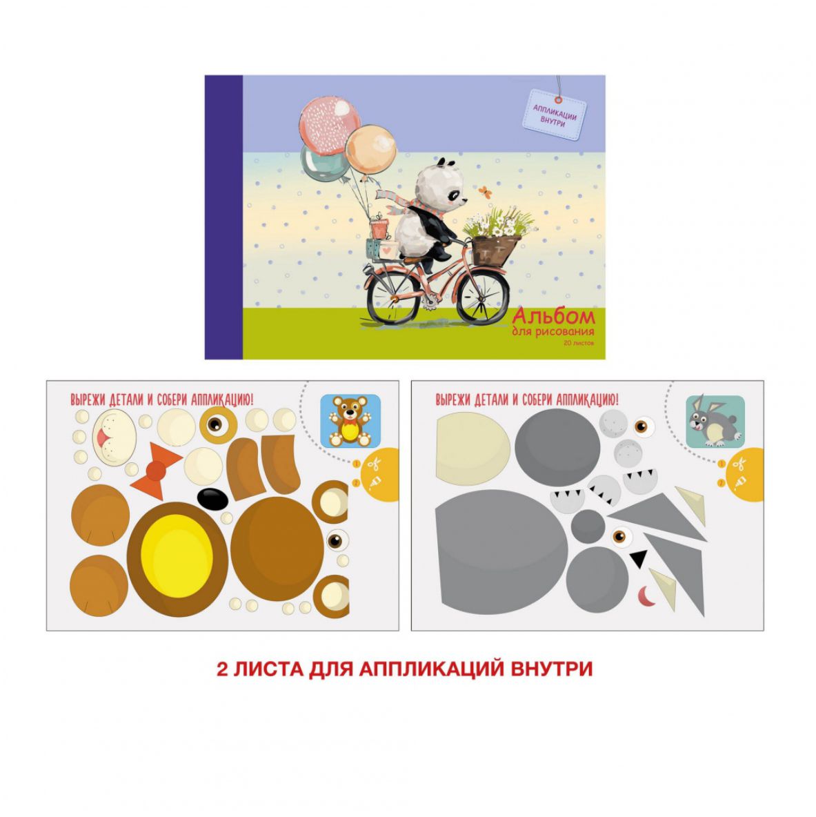 Альбом д/рисования - А4 20л. "Панда на велосипеде" 18 листов офсет + 2 листа для аппликаций. 110г/м2. (Канц-Эксмо)