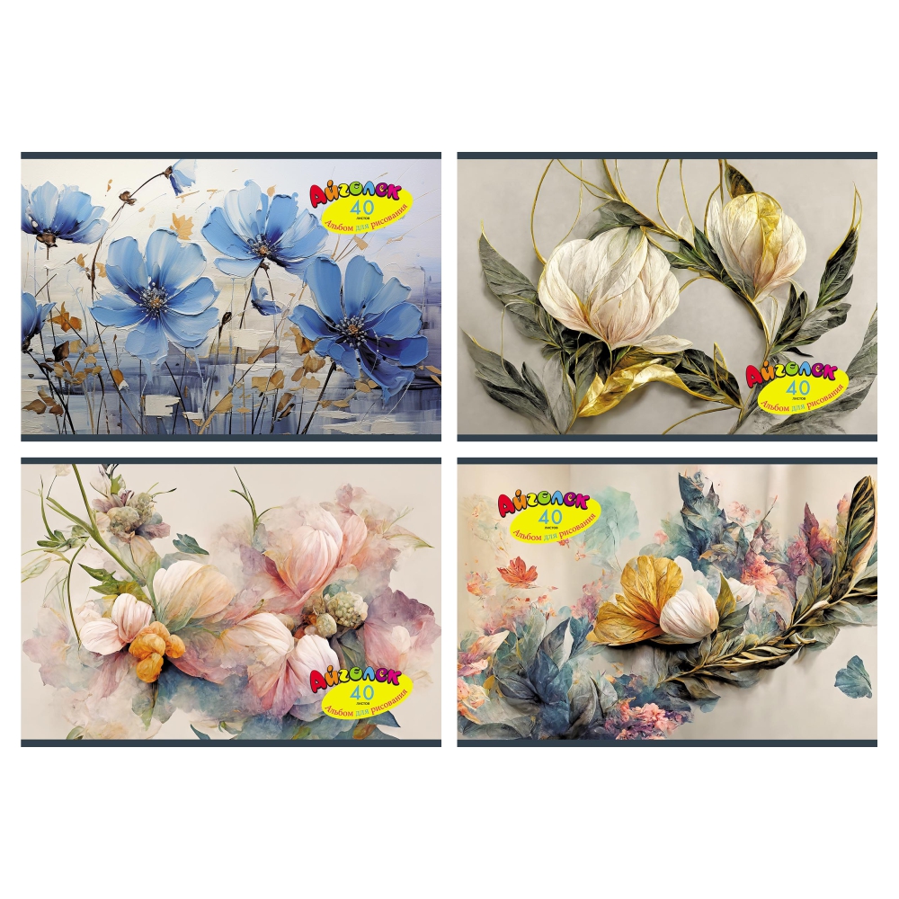 Обложка с красочными изображениями цветов создаёт настроение и мотивирует к рисованию, а удобный размер делает альбом идеальным для использования дома, в школе или на пленэре.