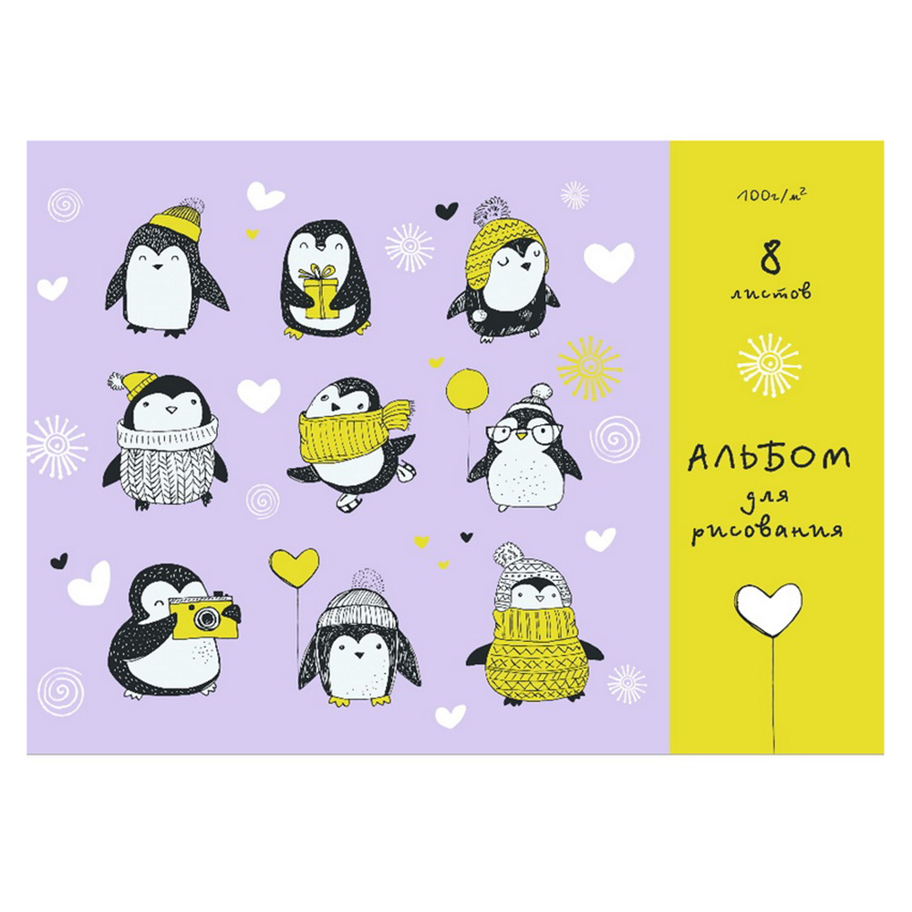 Альбом для рисования А4, 8 листов «Забавные пингвинчики» (Проф-Пресс)