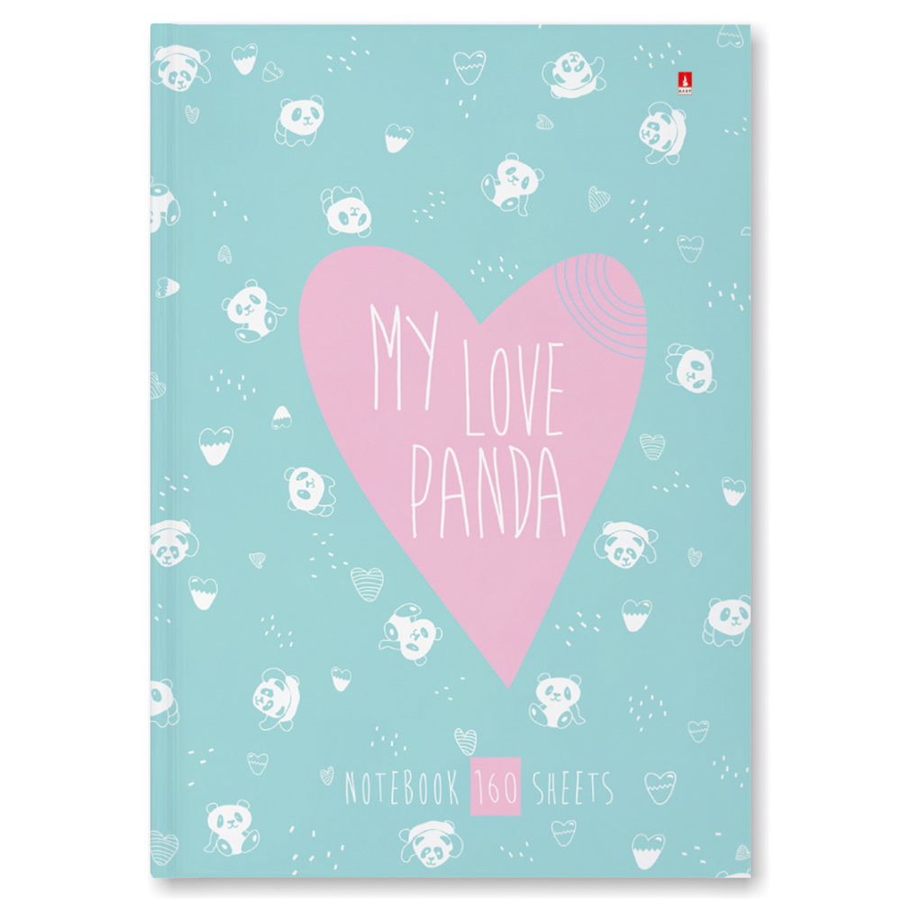 Блокнот для записей из коллекции «My love» от Bruno Visconti. Это компактный блокнот объемом 160 листов, формата - А5. Обложка изготовлена из твердого картона с глянцевой ламинацией. На голубом фоне с паттерном из панд и сердечек изображено большое розовое сердце с надписью «My love panda». Нежный и романтичный дизайн порадует девочек. Он не займет много места в сумке или рюкзаке. Стильный, удобный и качественный блокнот. Бумажный блок выполнен из белой бумаги в клетку плотностью 55 г/кв.м, закреплен книжным переплетом. Углы обложки и блока прямые.