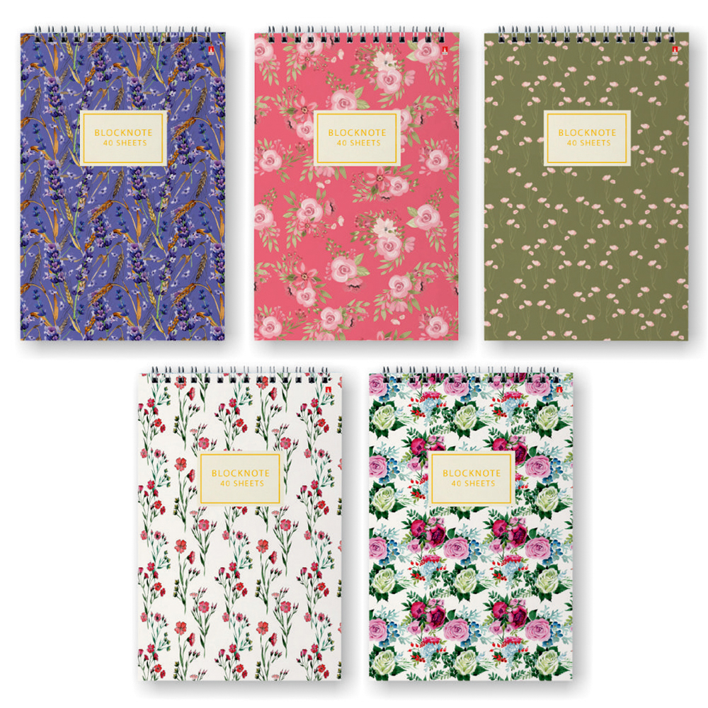 Блокнот - А5 40л. клетка "Цветы паттерн" на гребне (Альт)