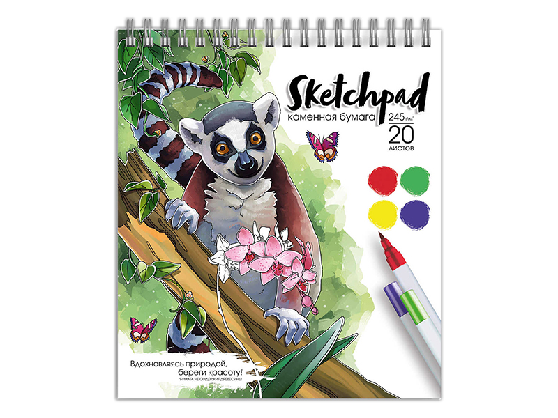 Блокнот д/эскизов - 168х195мм. 20л. "Лемур. Скетчпад" блок - белая каменная бумага 245 г/м2. (Феникс)