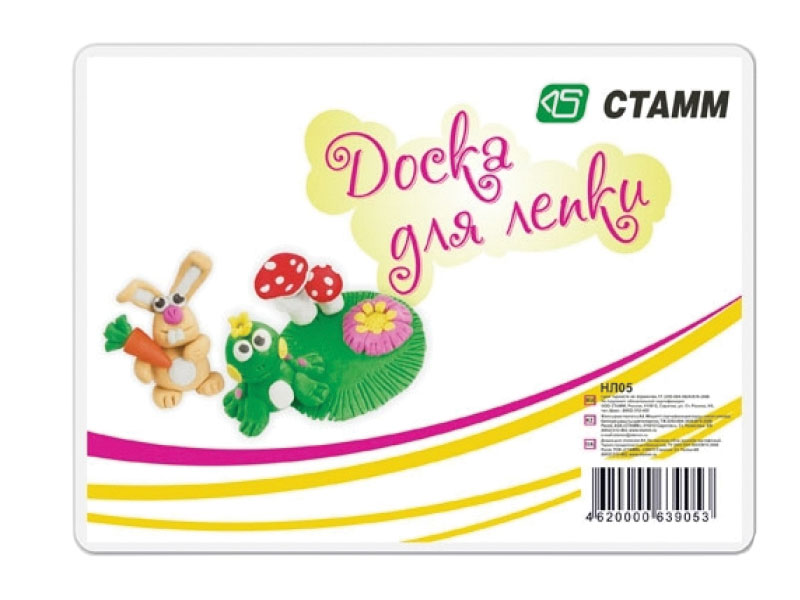 Доска для лепки от бренда «Стамм» пластиковая соответствует всем стандартам качества и безопасности. Доска имеет большую, безупречно гладкую - без выемок - рабочую поверхность. У модели закругленные углы, что гарантирует дополнительную безопасность при использовании. В качестве декора - яркий бумажный вкладыш.