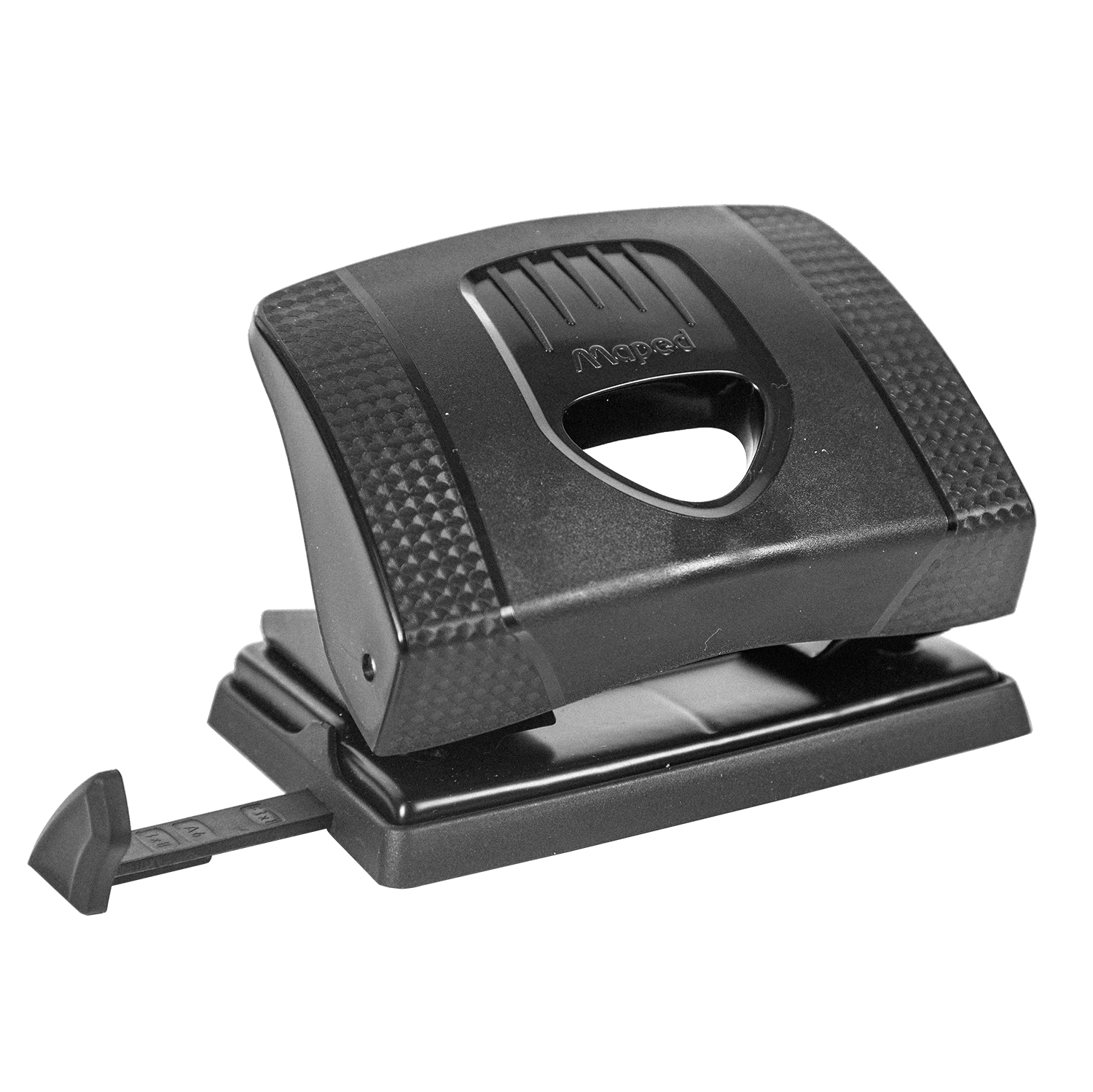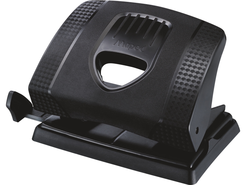 Аккуратно пробивает отверстия в бумаге для дальнейшего подшивания документов в папку ровной стопкой.
